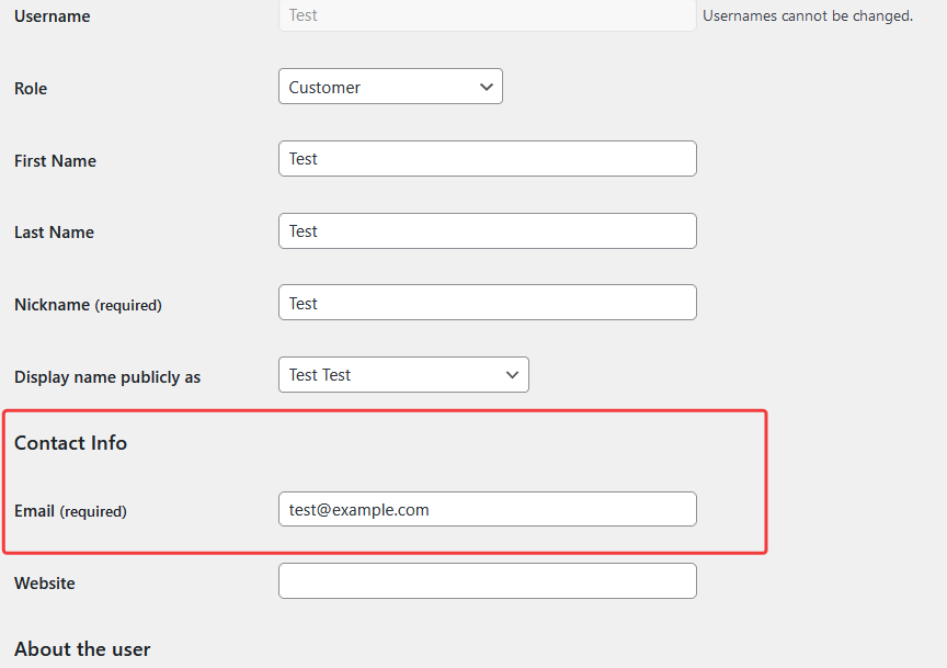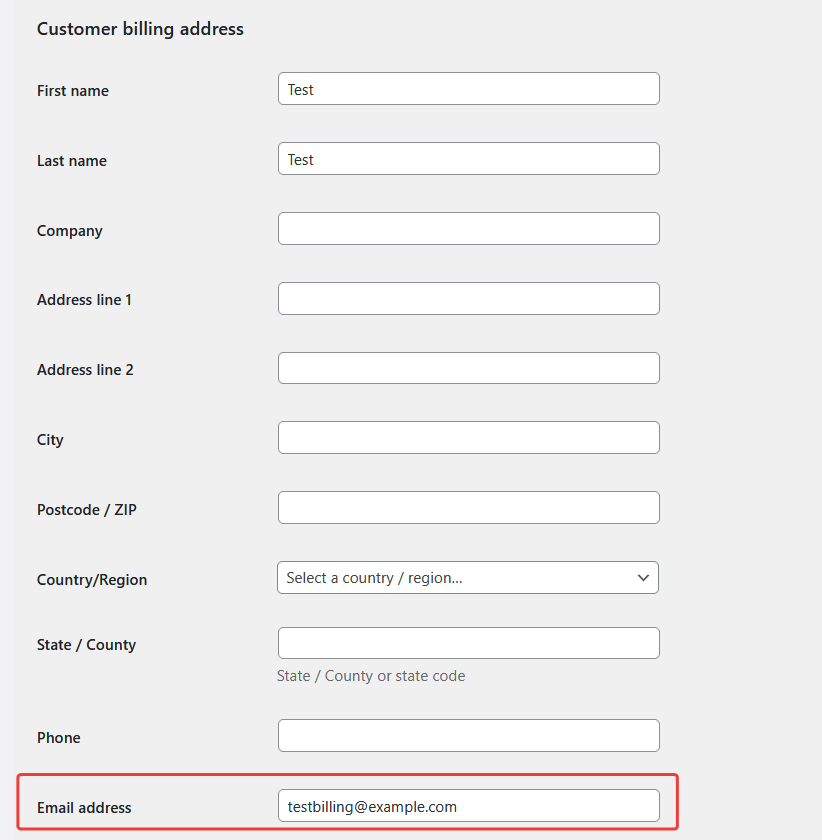 In Woobase the billing email address is returned (and strangely Text format and Avatar changed from the non paying customer default)