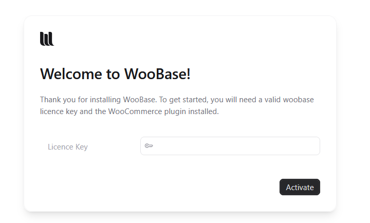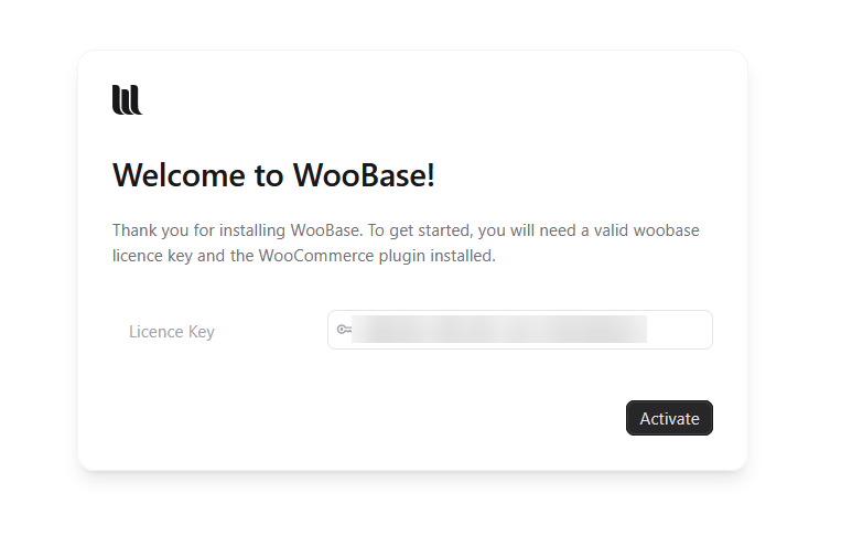 Navigate away from Woobase then back again and prompted once again for the licence key